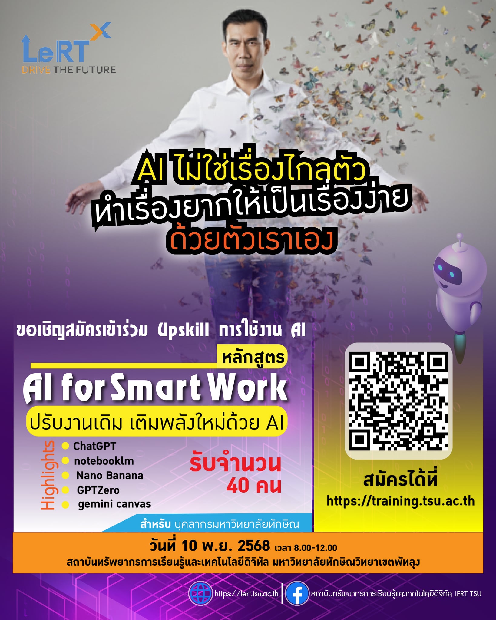 เปิดลงทะเบียน : 15/10/2568 - 10/11/2568 สำหรับ : บุคลากรมหาวิทยาลัยทักษิณ